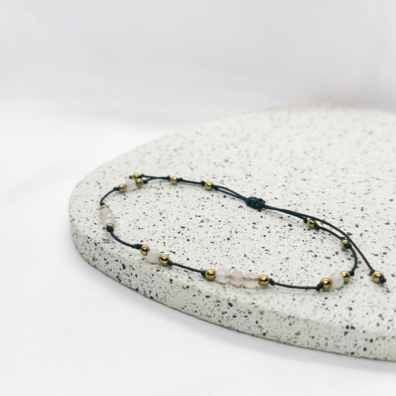Elegancka bransoletka z kamieniami naturalnymi na nici nylonowej to idealny dodatek dla miłośników subtelnej biżuterii. Kamienie, starannie rozmieszczone w równych odległościach, tworzą harmonijną sekwencję, dodając uroku i wyrafinowania. Wysokiej jakości nić nylonowa zapewnia trwałość i komfort noszenia, a naturalne kamienie wprowadzają wyjątkowy, naturalny akcent do każdej stylizacji.