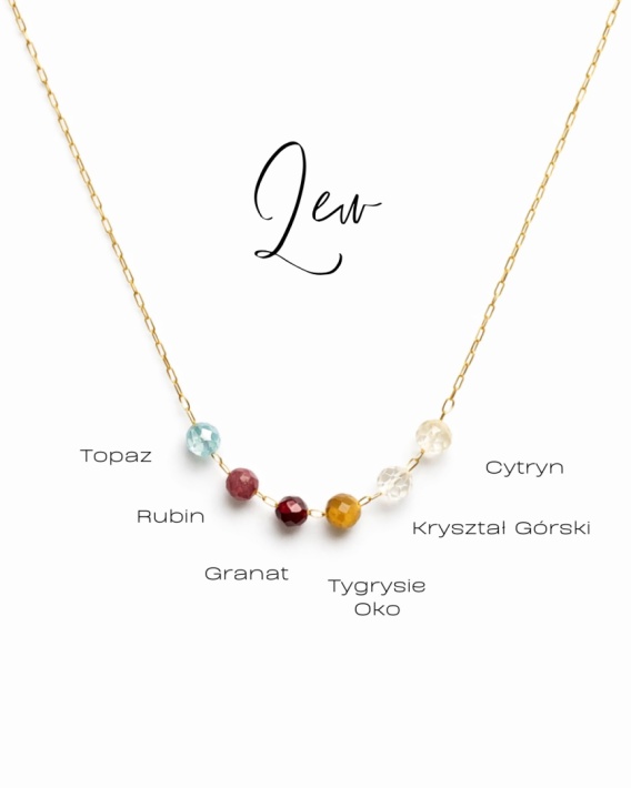 Naszyjnik z kolekcji Twój Zodiak dla znaku Lwa. Kompozycja naturalnych kamieni symbolizujących siłę, pewność siebie i energię.